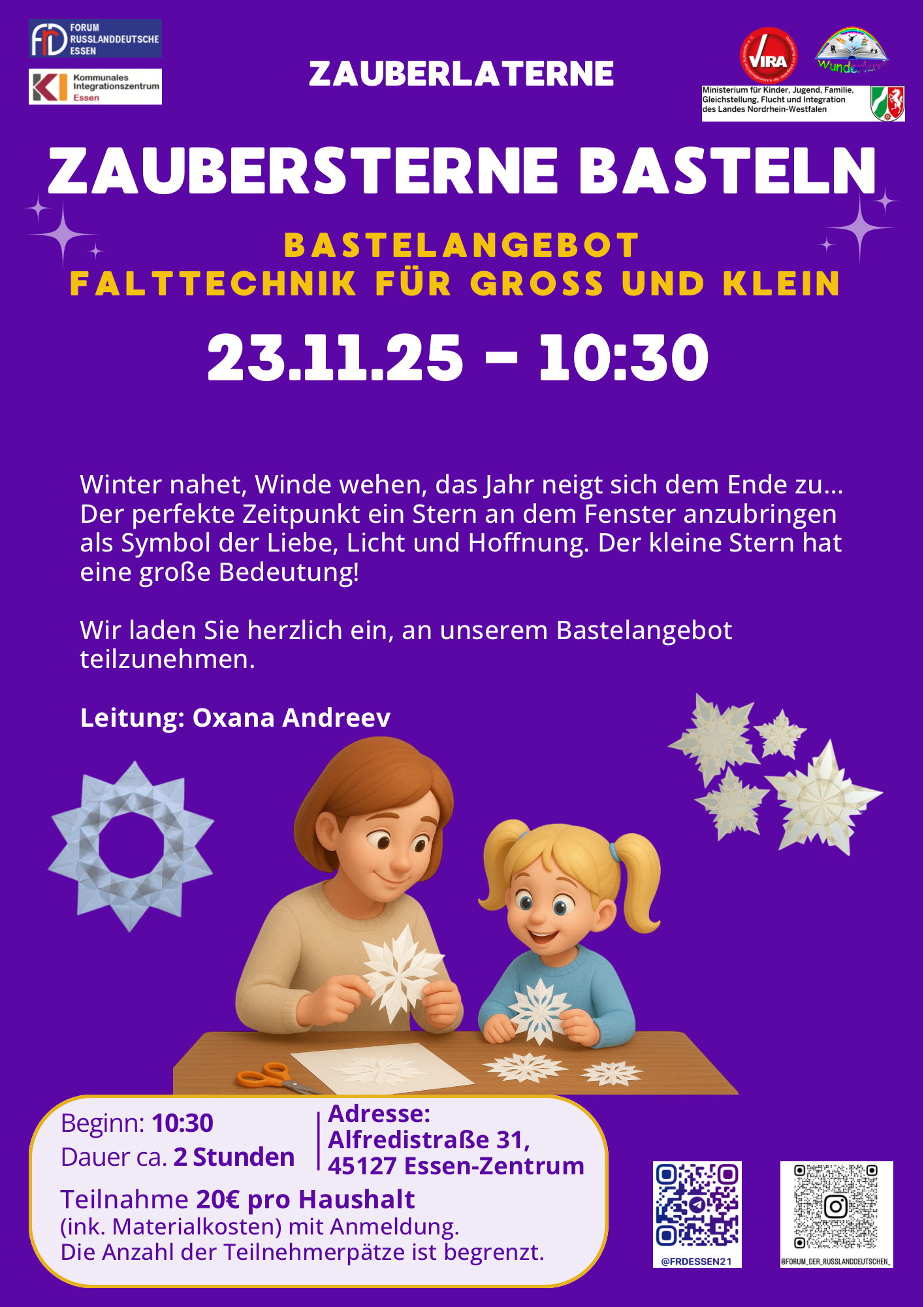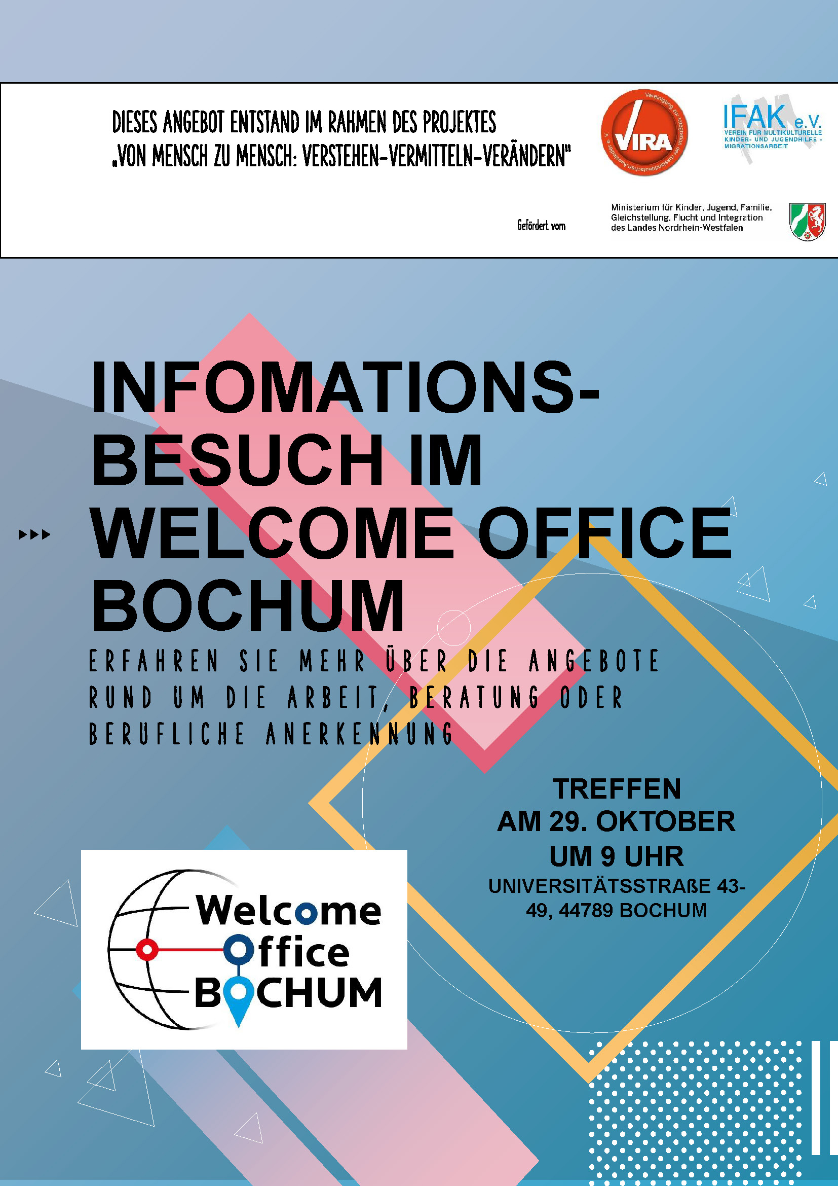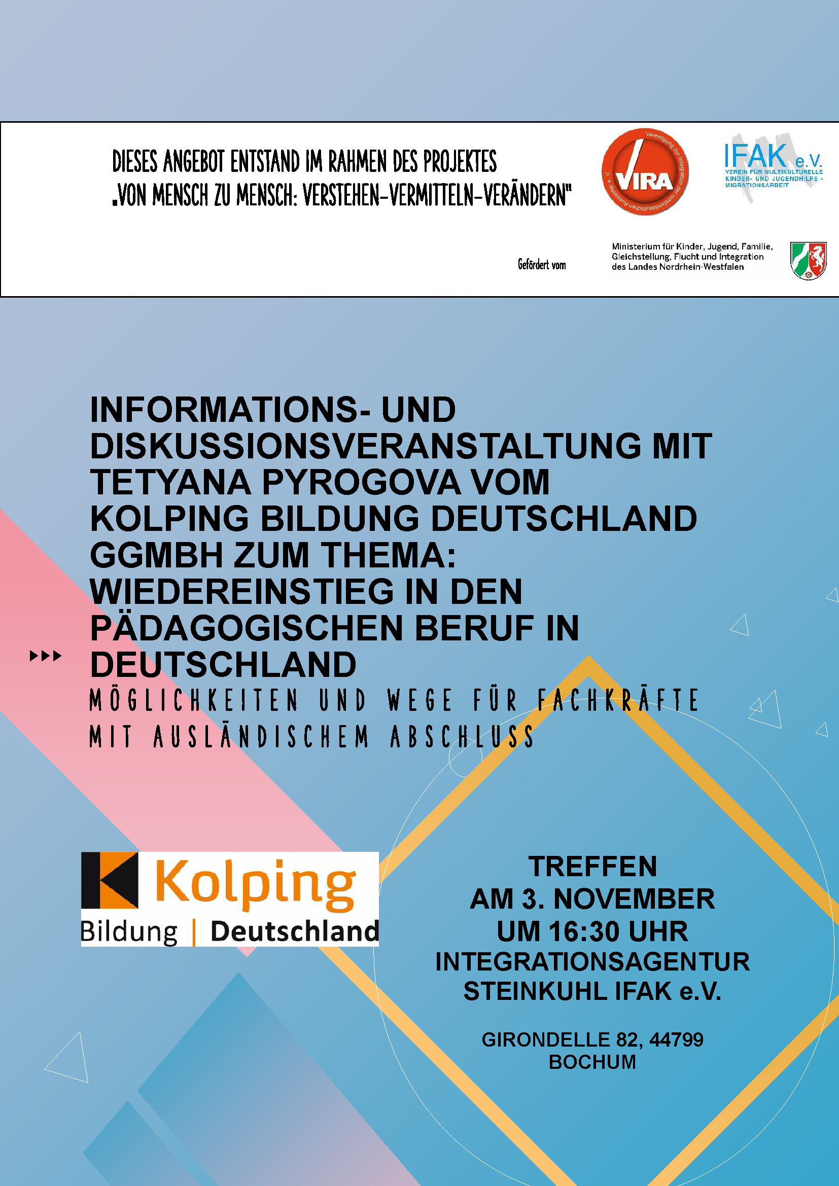 - Infoveranstaltungen, thematisiert werden berufliche Bildung und Arbeitsmarktintegration.